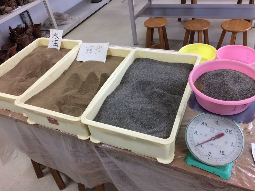 使う粘土は配合比率をいろいろと試してきていて、今は太田の粘土1000g+藤岡の粘土750g+砂750gをブレンドして混ぜて使っています。そこに水を650g入れてこねて使っています。
