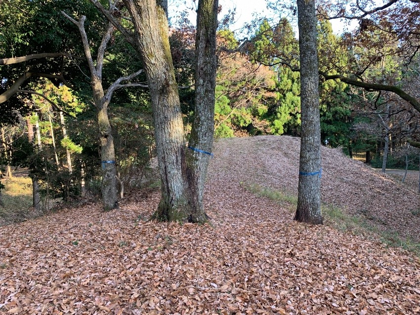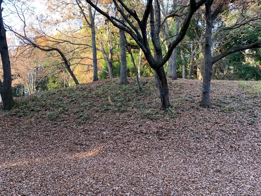 落ち葉で滑るのを注意しながら前方部墳頂に来ました。