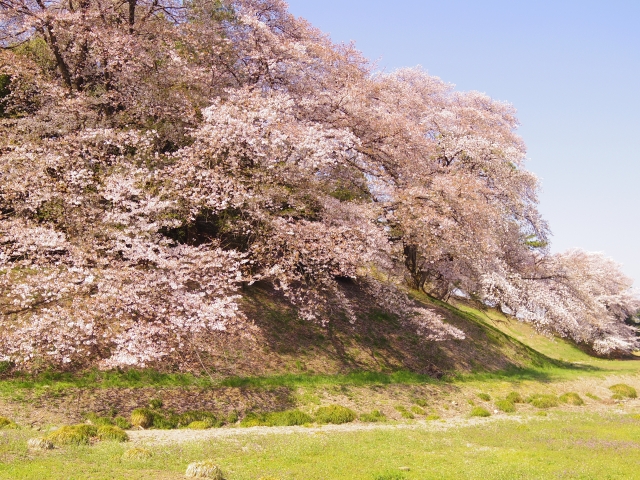 公園では、古墳の丘陵には桜やツゲ、松などが植えられていて、春になると桜が咲いてとてもきれいなんです。