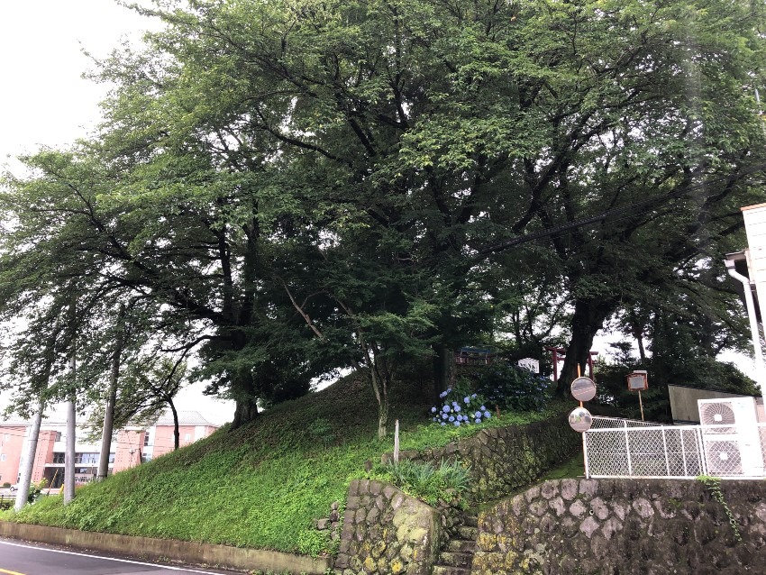 写真は「堂山稲荷古墳」です。奥に合同庁舎が見えています。